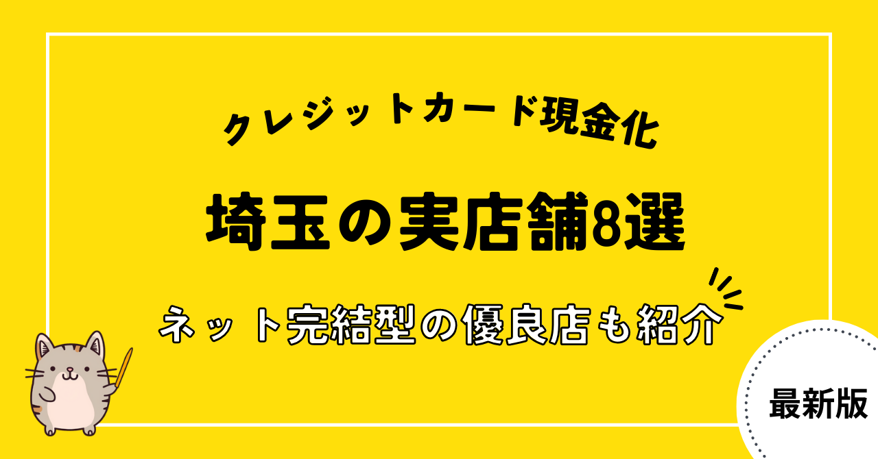 本記事では、埼玉県内の店舗型クレジットカード現金化業者や、現金化に利用できる買取業者を9社紹介します。